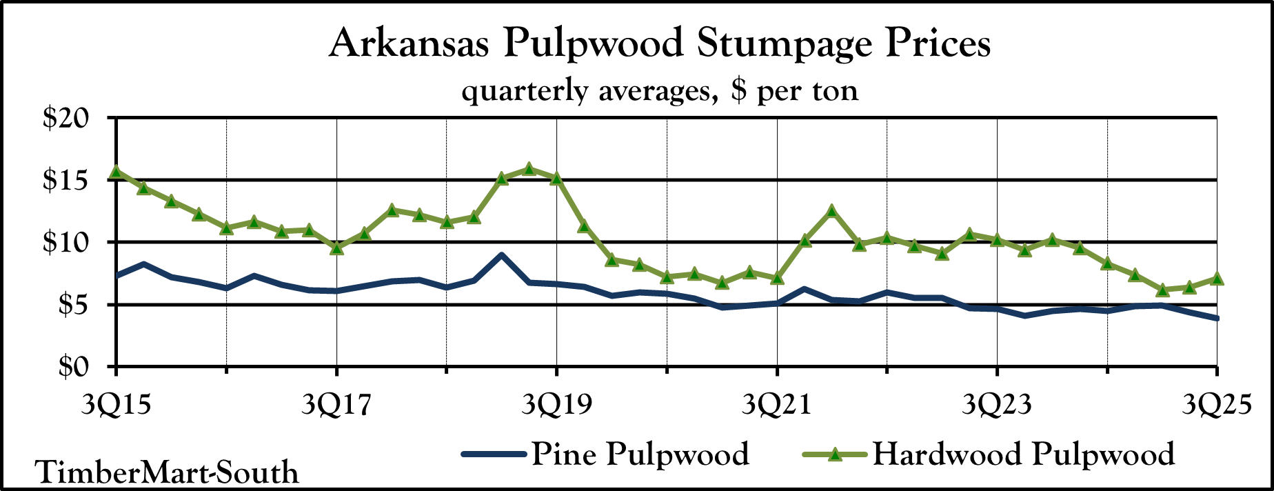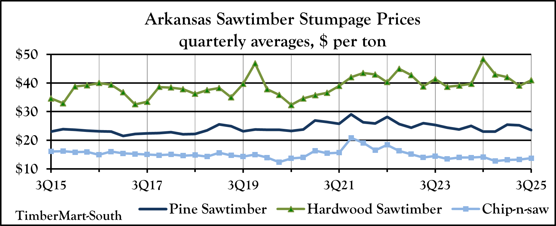 Arkansas State-wide Average Stumpage Prices - US$ per ton